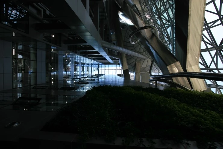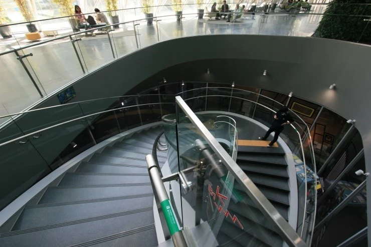 유리 건물 덥고 춥고 바람도 안 통하고 업무공간도 좁다.