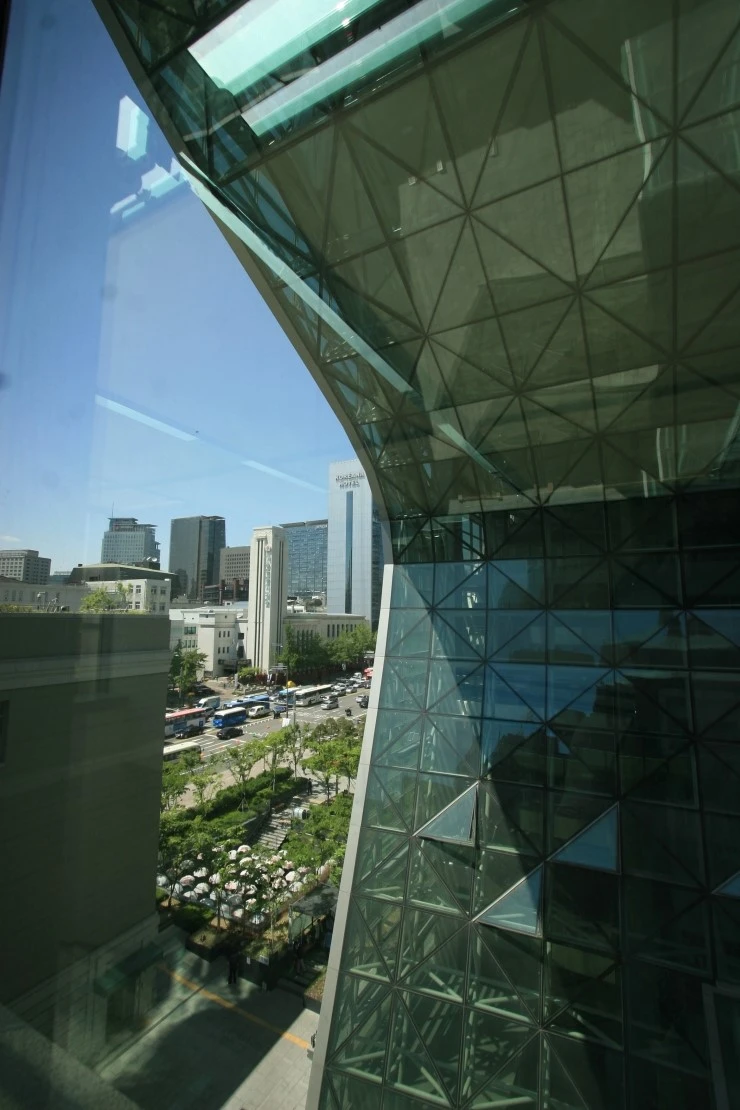 앞의 구청사를 넘어 서울광장과 대화하려다 보니 신청사가 안간힘을 써서 고개를 내밀게 됐다.