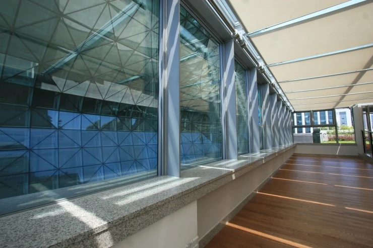 회의실 외벽 1층엔 본관에 쓴 것과 같은 화강암을 길게 잘라 붙였다.