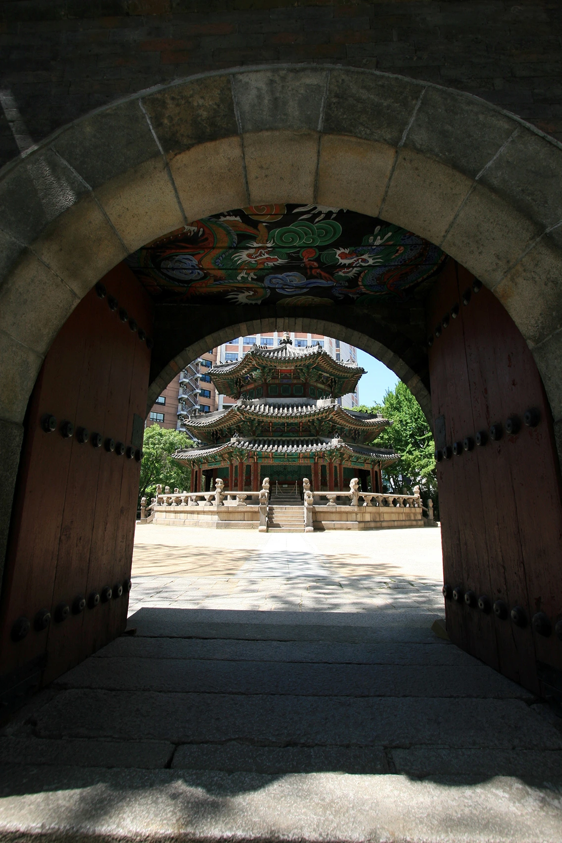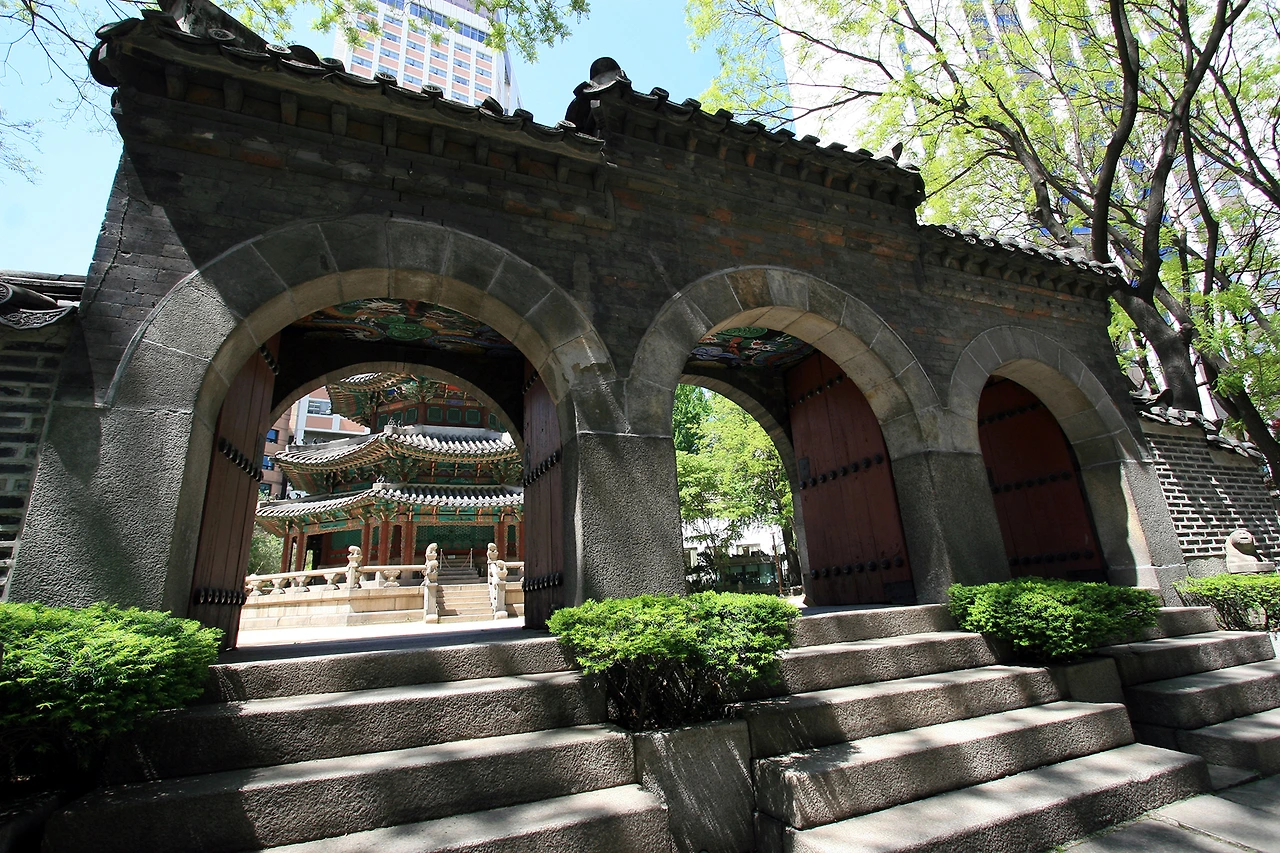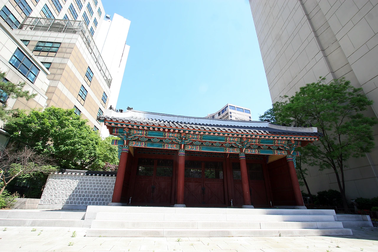 서울시청광장에서 정면이 프라자호텔이 있고, 프라자호텔과프레지던트호텔사이 덕수궁 맞은편에 고층빌딩사이에 보여지는 외소해보이는 세쪽의 닫힌문이 고종황제의 야심작 환구단외문이다.