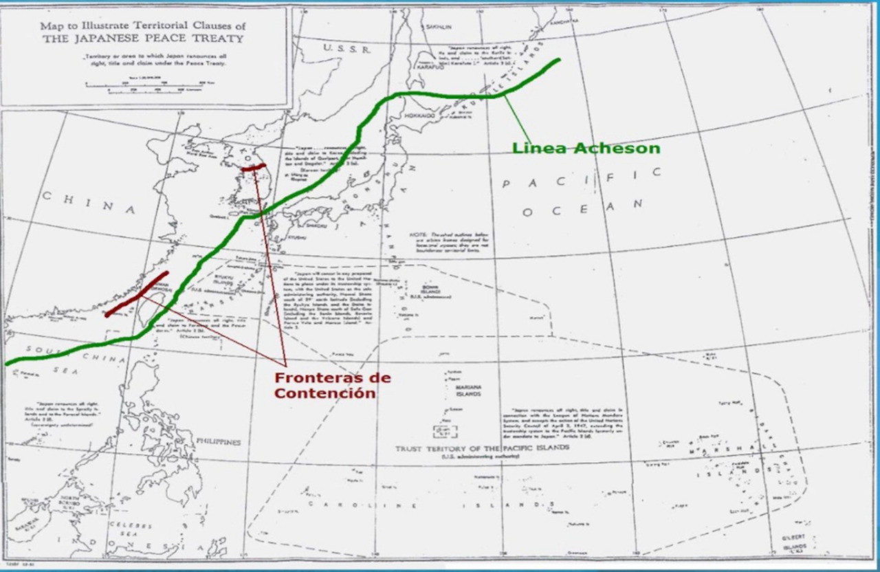 미국의 일방적인 ‘Acheson line 에치슨 라인’선언에 구 소련과 중국공산당의 협잡에따라 북한이 전쟁을 일으킨 트리거가된 일이 회자됩니다.