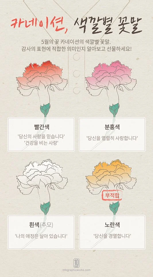 저 노래를 통해 붉은색과 흰색의 카네이션 의미를 알았죠.