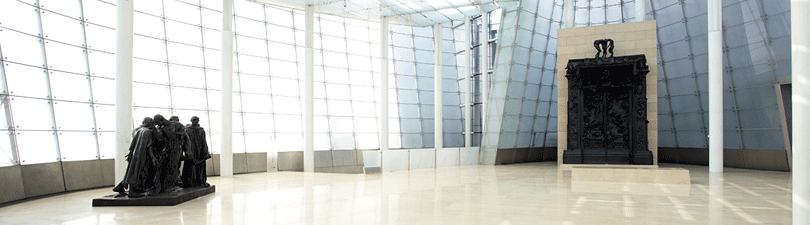 이곳에 전시된 오리지널 두 상설 작품중의 하나인 Les Bourgeois de Calais 깔레의 시민.