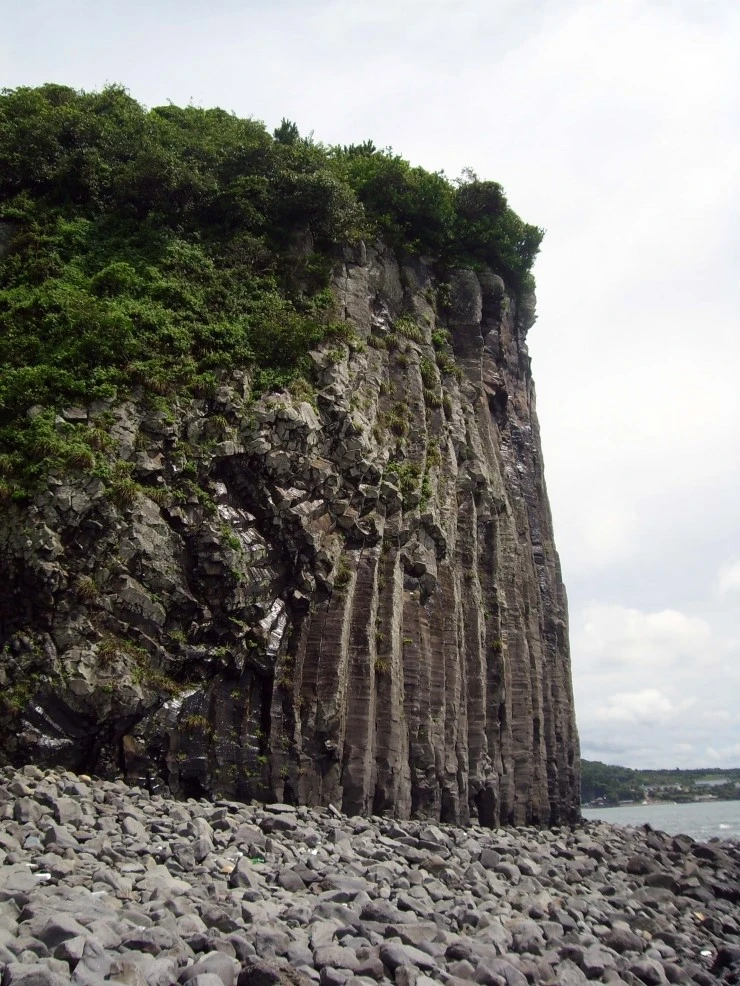 찌들 듯한 기세로 하늘로 향해 있는 갯깍의 주상절리대……