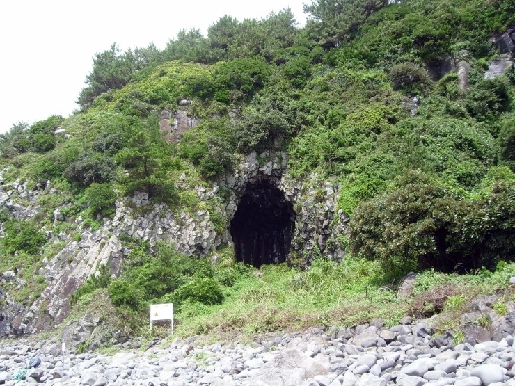 '들렁궤'라고 부르는 거대한 해식동굴의 입구에는 금방이라도 천정에서 돌 조각이 떨어져 내릴 것 같은 모습을 하고 있다.