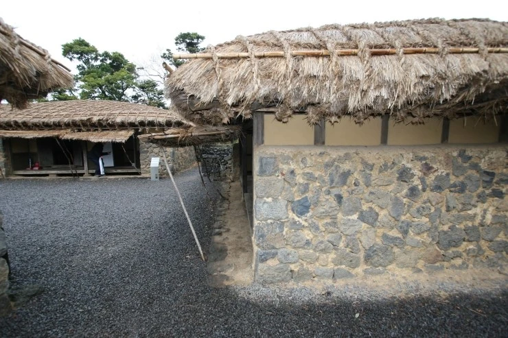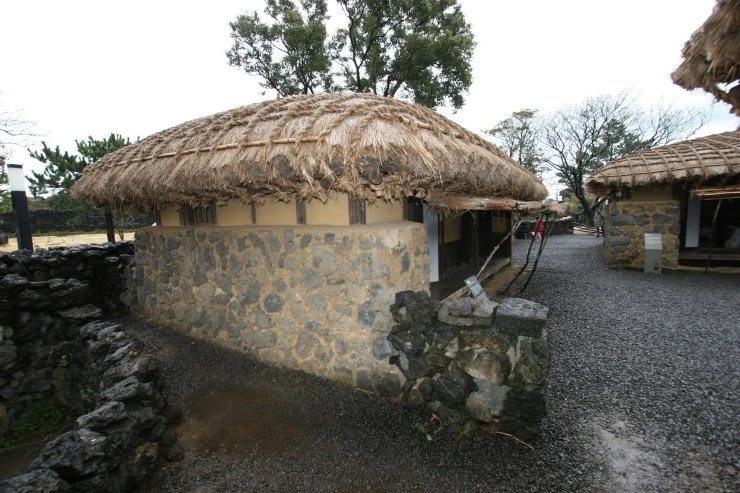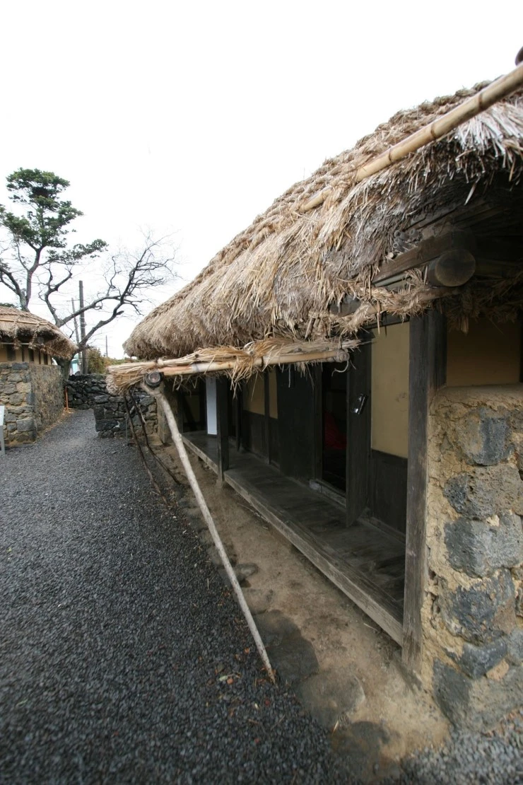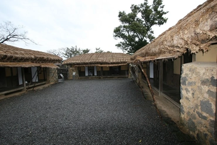 누마루로 진입하면 제주도식 초가 4채가 보인다.