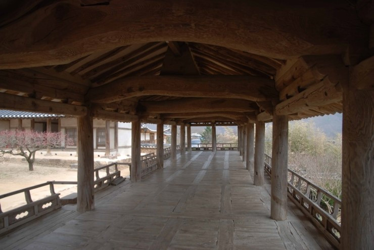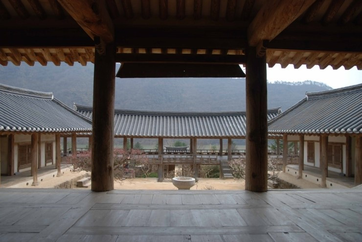숙여 만대루밑을 통과하면 시원한 안마당이다.