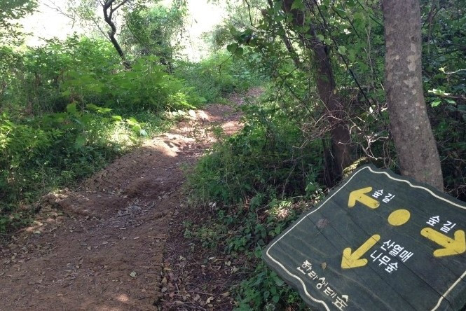 초입에서 5분 정도 걸어오면 진짜 숲길로 들어서는 입구.