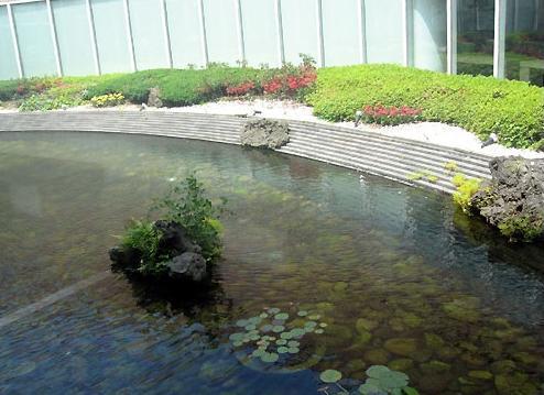 여기 수돗물 안 나와 자비 7천만 원 들여 간신히 중정의 연못에 물을 채우고 있다.