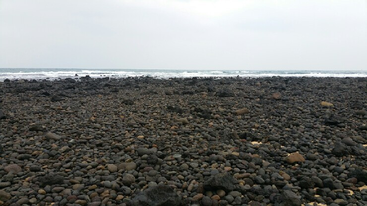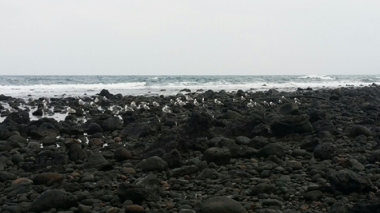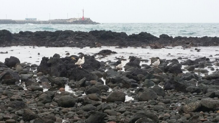 대부분 검은색 현무암이 대부분인 제주에서 이례적으로 알록달록 빛 고은 몽돌들이 해변을 이르고 있는 이색적인 해변에 앉아본다.