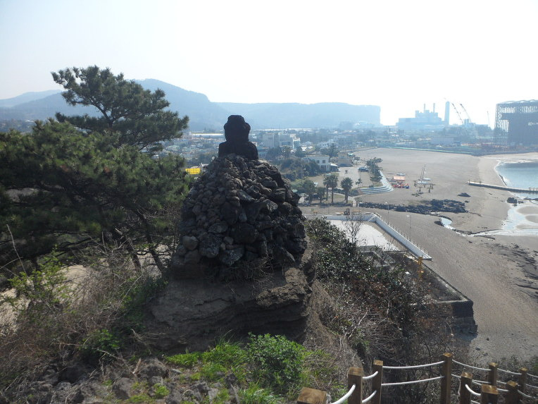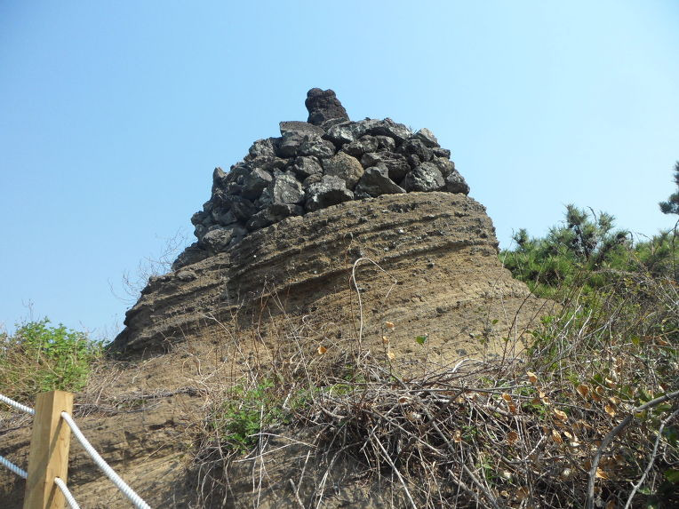 도로쪽에서 보면 그저그런것같은 오름으로 보이기에 잘 찾지않는오름이지만 바다쪽에서보면 거대한 암반동산으로 보인다