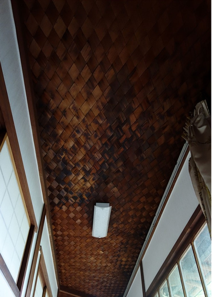 외벽의 상부는 회반죽 뿜칠로 마감하여 색채와 질감이 목재와 좋은 조화를 이룬다.