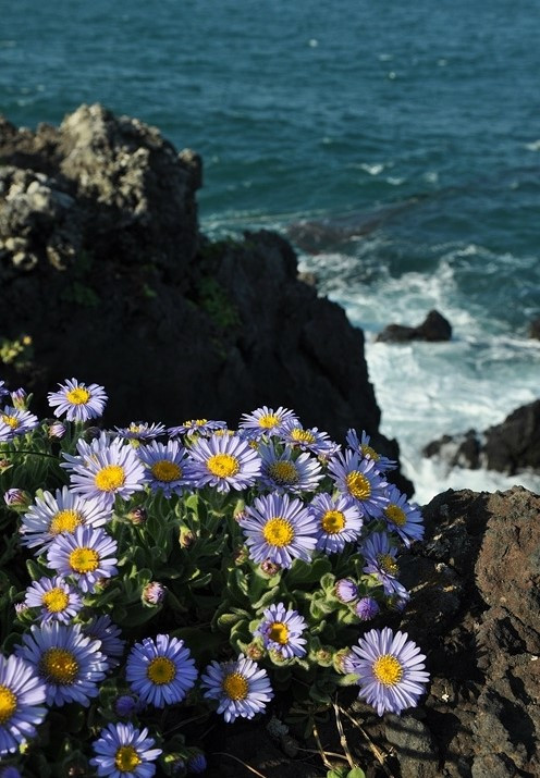 해안가 끝의 빈 벤취에 앉아 제주의 바람, 제주의 파도소리, 그리고 해국의 향에 젖으며 온전한 나만의 바다요, 나만의 시간 느낀다.