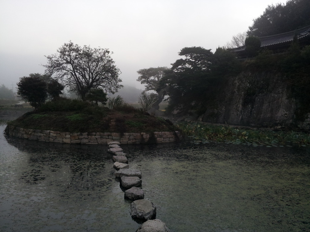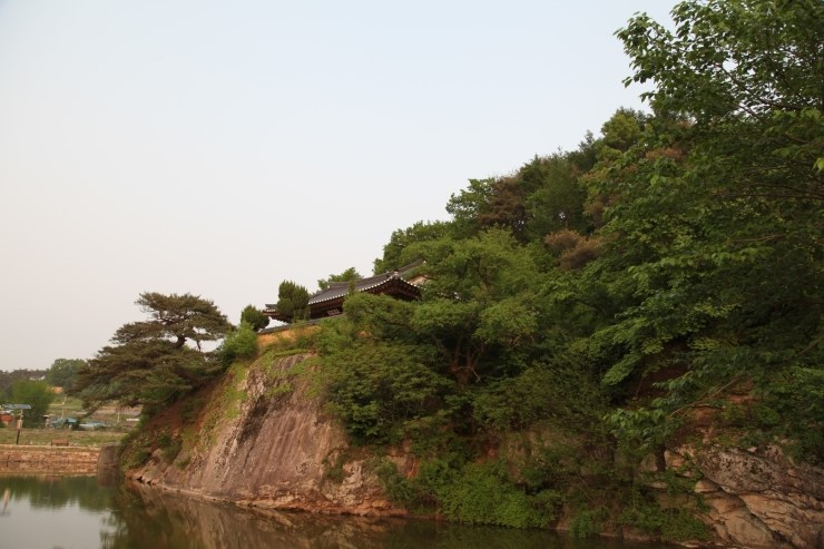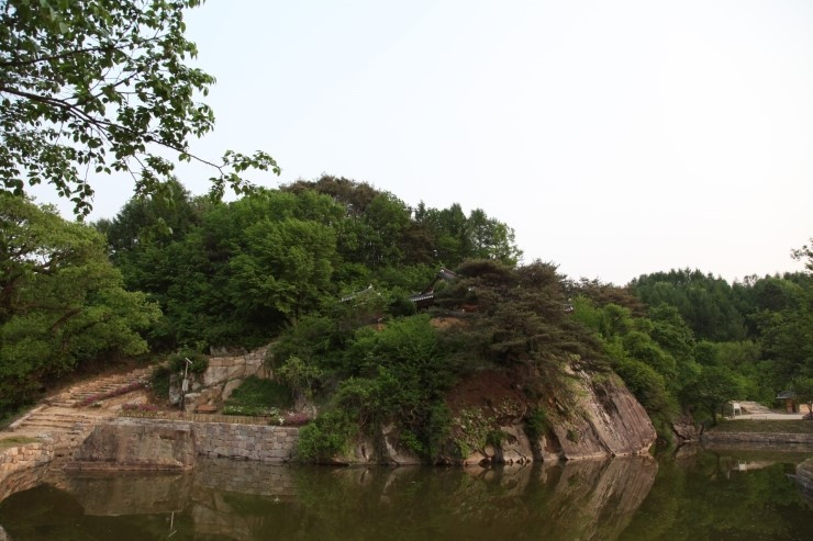 병풍처럼 펼쳐진 암반위에 정자 하나 짓고 안빈낙도.