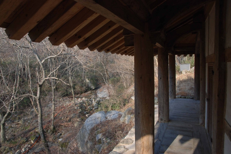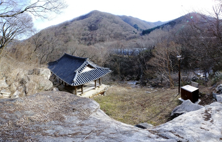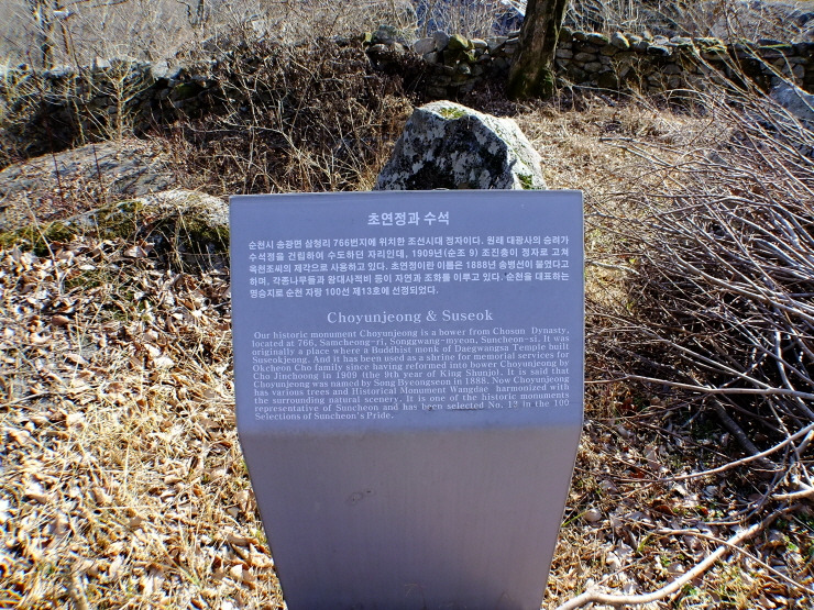 왕대마을 안쪽 길을 지나 모후산을 오르다 보면 깊은 계곡 옆 기슭에 초연정이 있다.