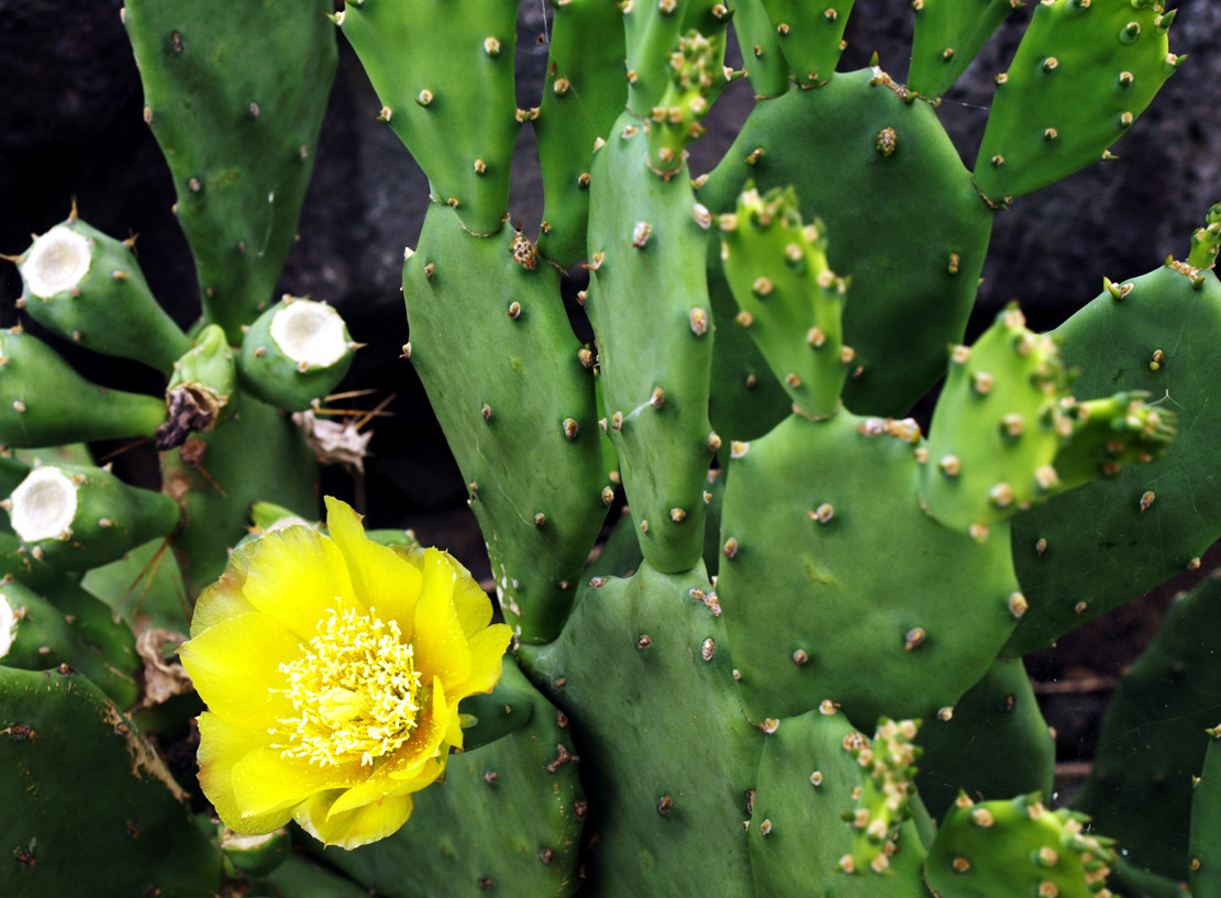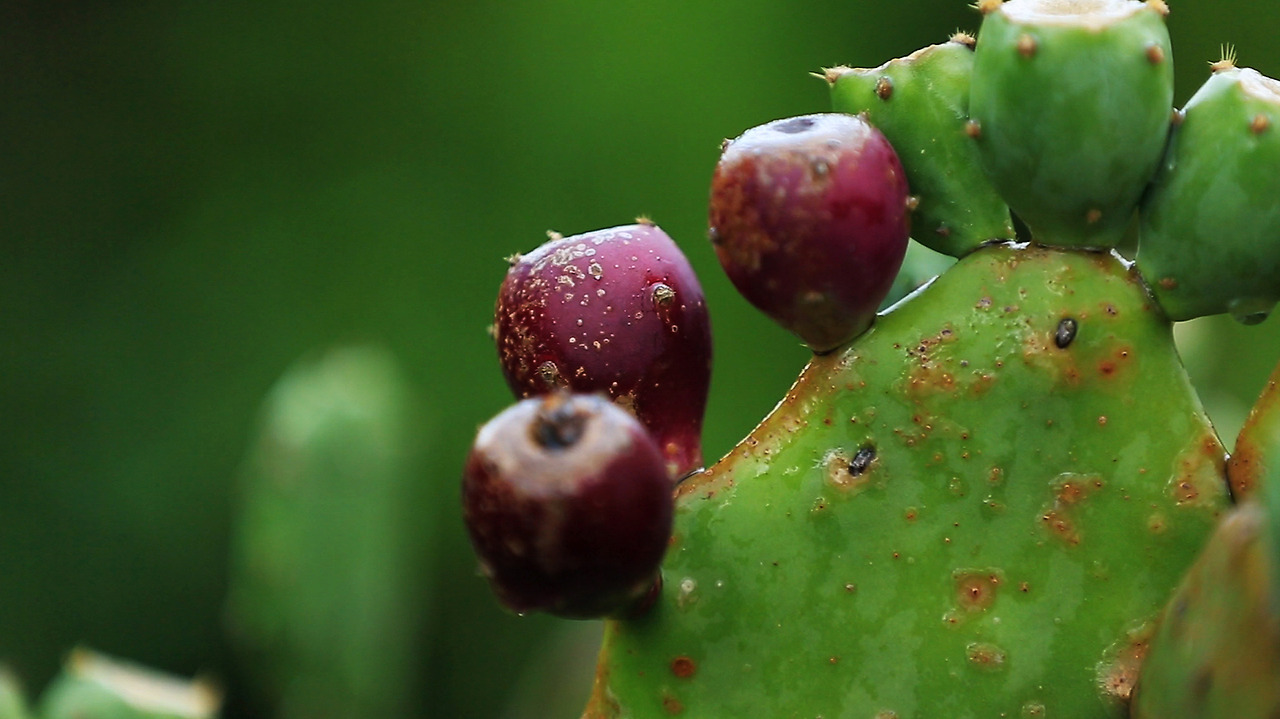 이 선인장들은 상큼한 초롯빛으로 7월이 되면 노란 꽃이 피고, 11월에는 보라색 열매가 맺힌다.