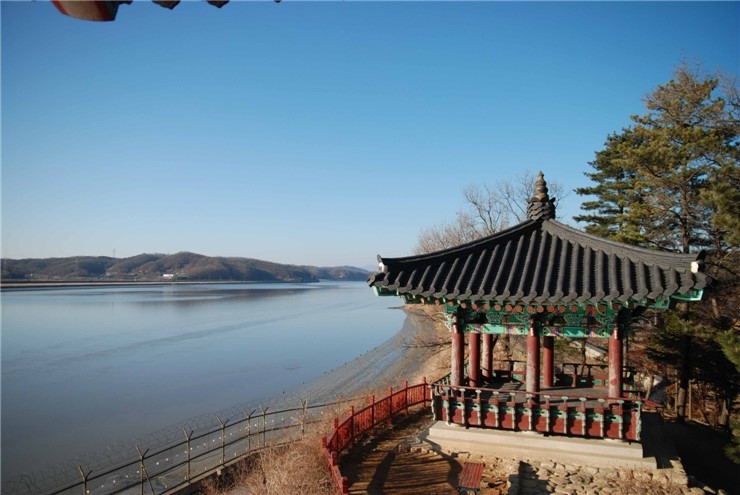 맑은 날 정자에 오르면 멀리 개성의 송악산을 볼 수 있다.