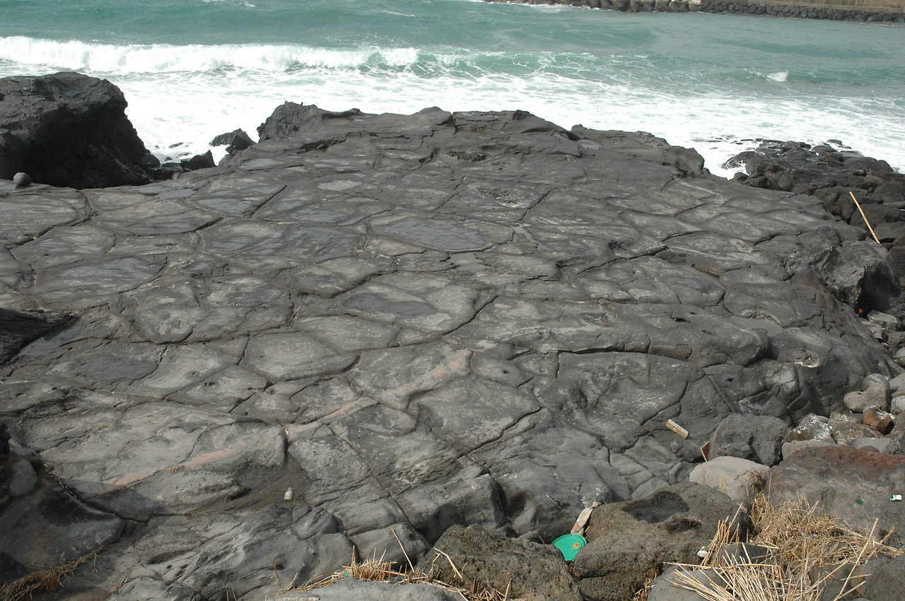 너른 돌빌레는 마치 거북등처럼 금이 나 있다.