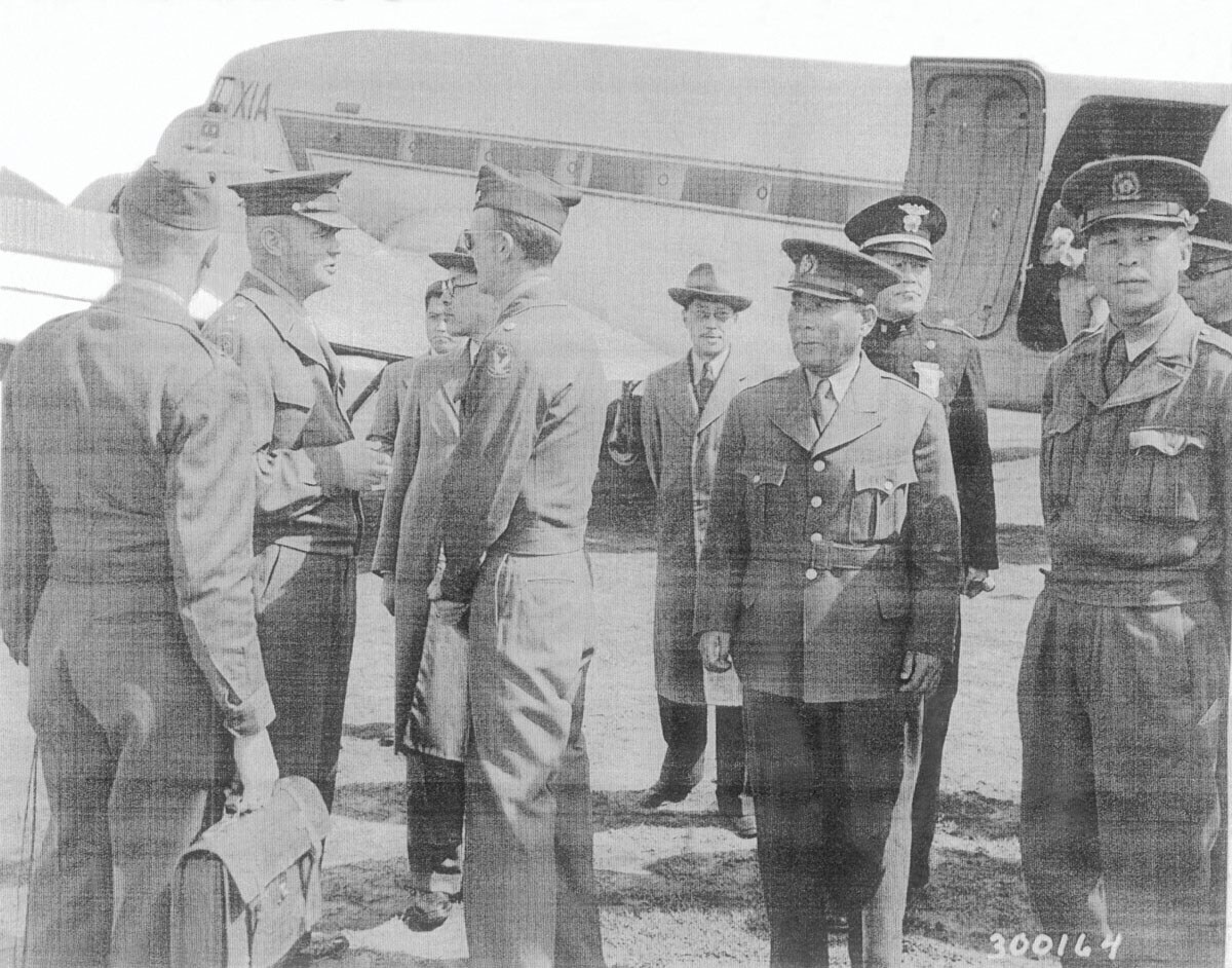 5·5 최고수뇌회의 참석차 제주에 온 수뇌부들. 좌측에서 두번째 군정장관 딘 소장, 오른쪽에서 두번째가 조병옥 경무부장, 맨 오른쪽이 김익렬 연대장