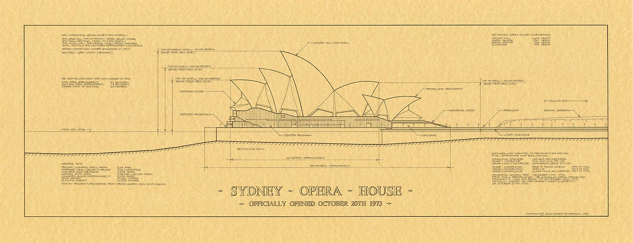 오늘날 아름다운 미항 시드니의 상징물로 유명해진 오페라하우스는 1957년 국제현상공모 방식으로 idea가 모아져 의외로 39살의 덴마크 건축가 Yørn Utzon요른 웃존의 작품이 당선되었다.