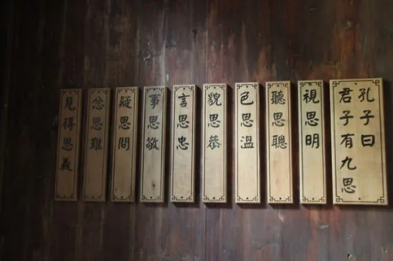 視思明 聽思聰 色思溫 貌思恭 言思忠 事思敬 疑思問 忿思難 見得思義