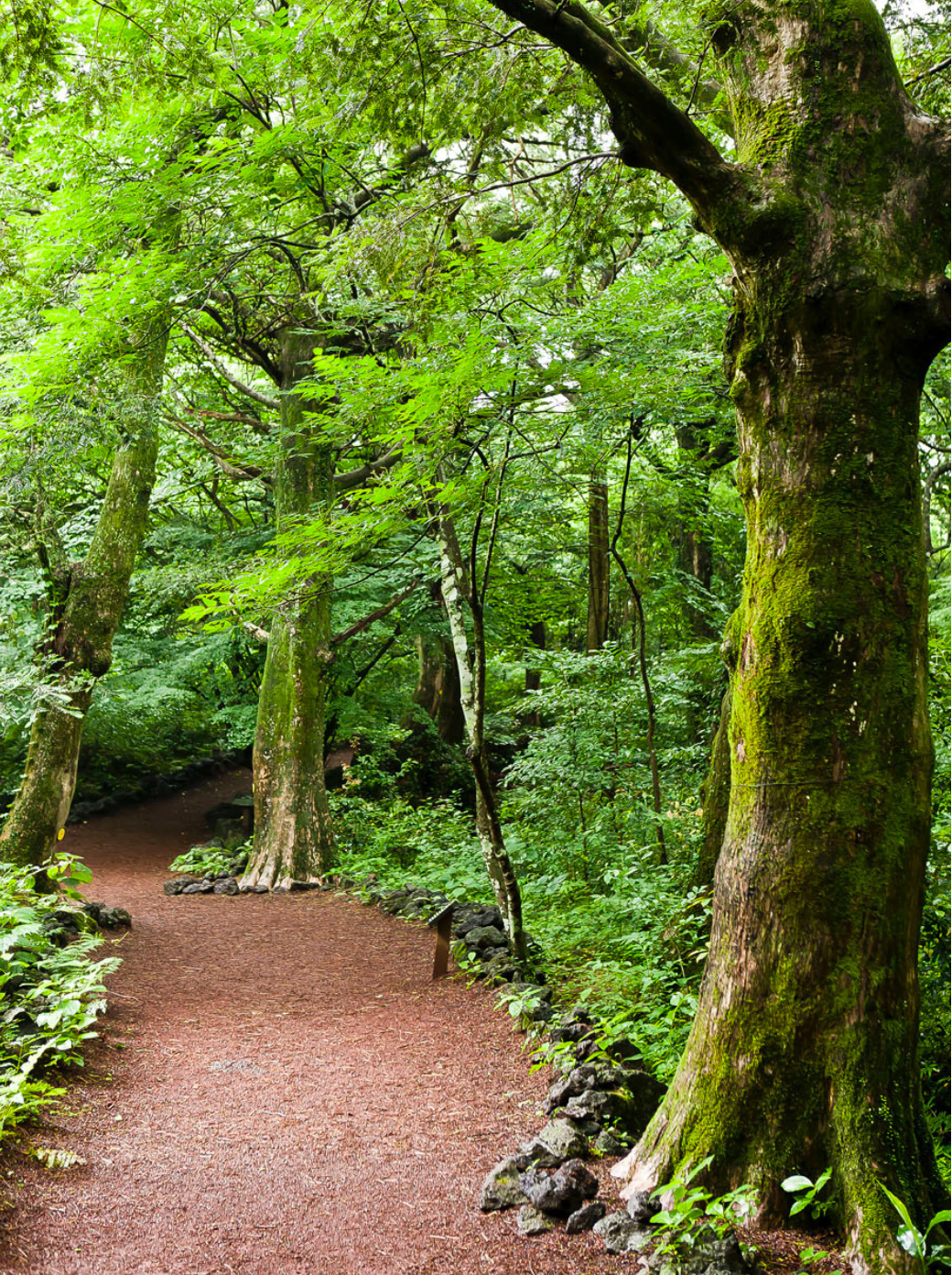 비자나무 정글 숲의 모든 산책길은 제주 화산석인 자연산 송이로 깔려있다.