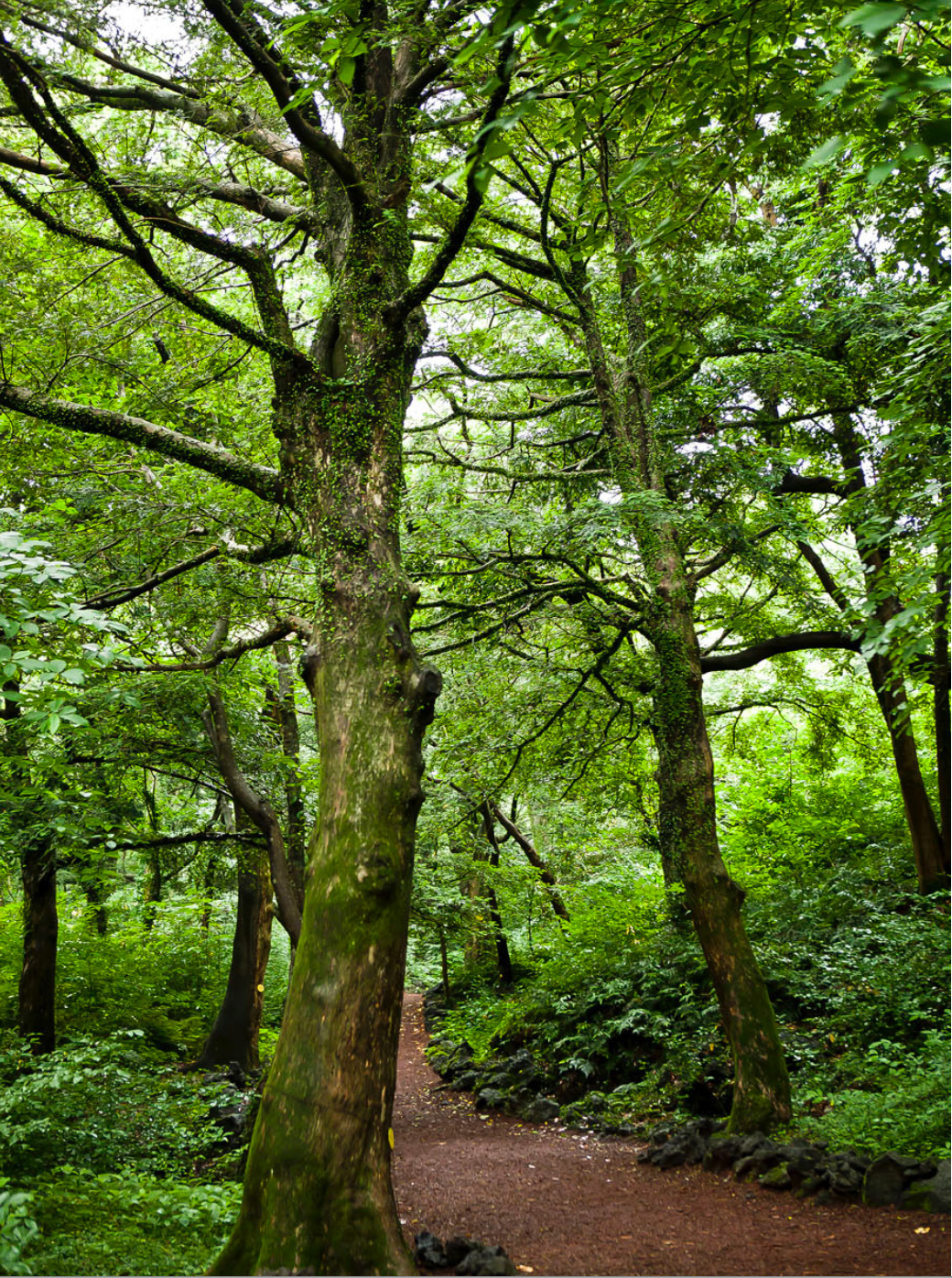 휴식를 취하거나 건강을 위해 부담 없이 천천히 걷는 산책에 시간에는 쫓기지도 않고 거추장스러운 준비물도 필요 없이 가벼운 마음으로 걸으며 온갖 상념을 잊게 해줄 수 있는 산책길위의 천년의 거목들과 수백 년 세월에 걸쳐 만들어진 무성한 수풀들과 넝쿨들, 풀벌레 소리와 산새들의 지저귐이 발길을 인도해 주는 이 숲이 가장 어울리지 않나 생각해 본다.