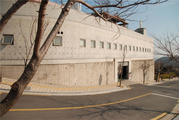 2천명의 신도가 천막 미사 중이니 옹벽과 싸울 순 없고 자동으로 노출콘크리트 결정하여 속전속결.