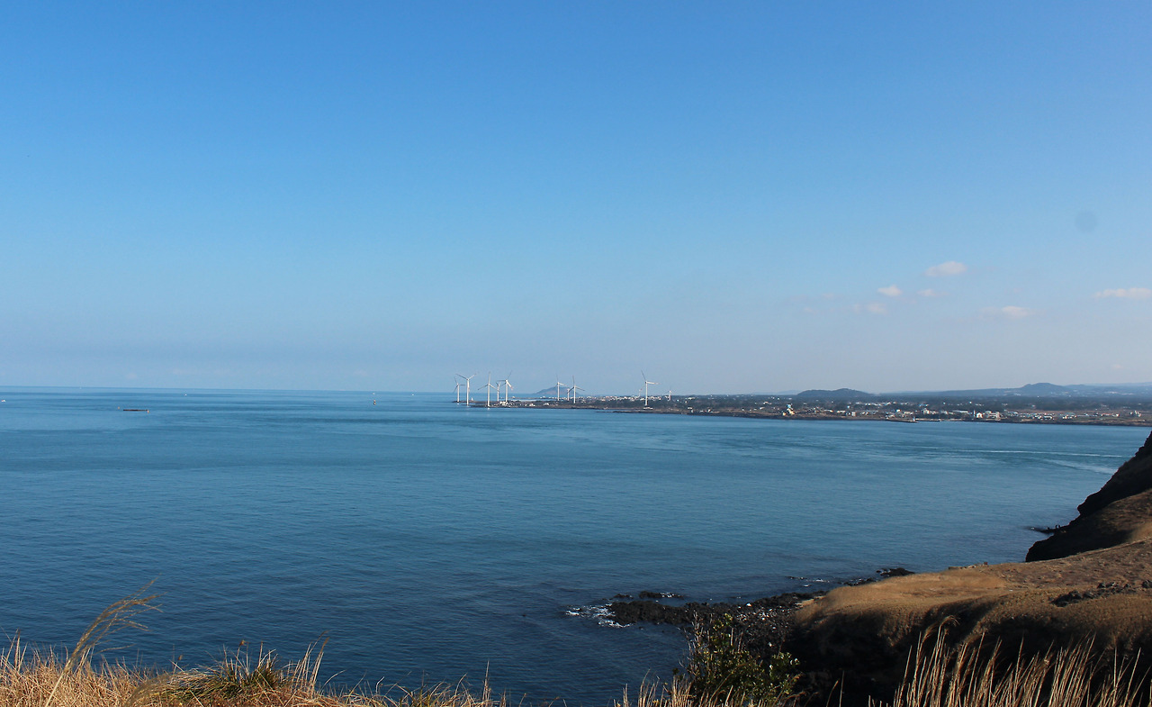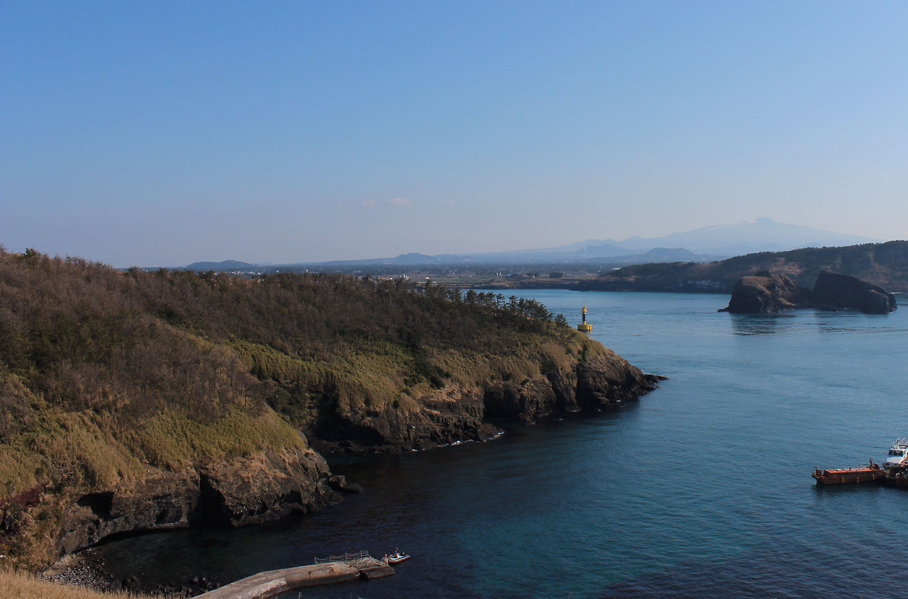 섬의 동쪽 언덕에 오르면 바다건너 한라산의 모습이 훤히 들어온다.