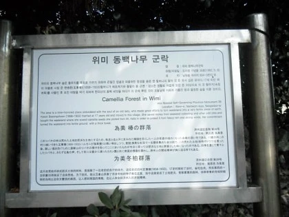 1982년 5월 8일 제주자치도 보물 39호로 지정되어 보호를 받고 있는 위미리 동백나무군락지.