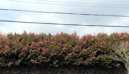 동백나무와 제주의 돌담이 어우러진 위미리 동백나무 군락에 꽃이 피기 시작하면 어느새 골목마다 붉은 길이 열리게 된다.