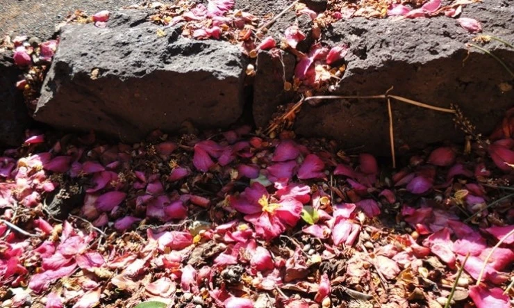 중산간지역의 야생화가 개화할즈음에 기다렸다는 듯이 피어나는 겨울과 봄사이의 동백이다.
