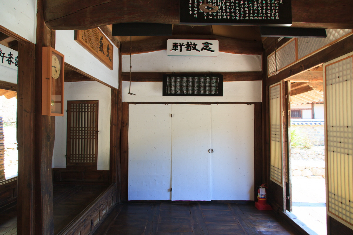 사랑채 앞을 지나 안채로 들어가게 되는 일반적인 사대부 집과 달리 사랑채와 안채가 남쪽을 바라보며 일자로 늘어선 구조로, 서쪽의 사랑채가 동쪽의 안채보다 뒤편에 있다.