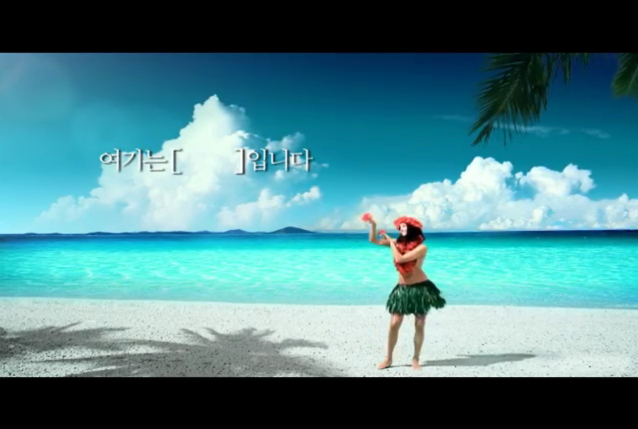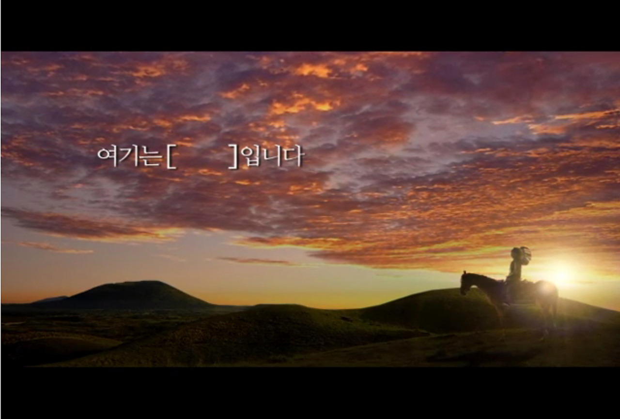 이어 [ ]자리에 [제주도]를 넣은 자막을 보여주며 외국의 모습이라고 여겨지던 장면들이 실제로는 모두 제주도였음을 알려주는 형식으로 마무리된다.