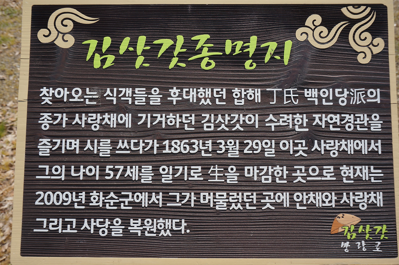 화순군은 9억 1500만원을 들여 종명지에 안채를 비롯해 사랑채 복원, 망미대 건립 등 김삿갓 유적지 정비사업을 지난 2009년 9월 완공했다.