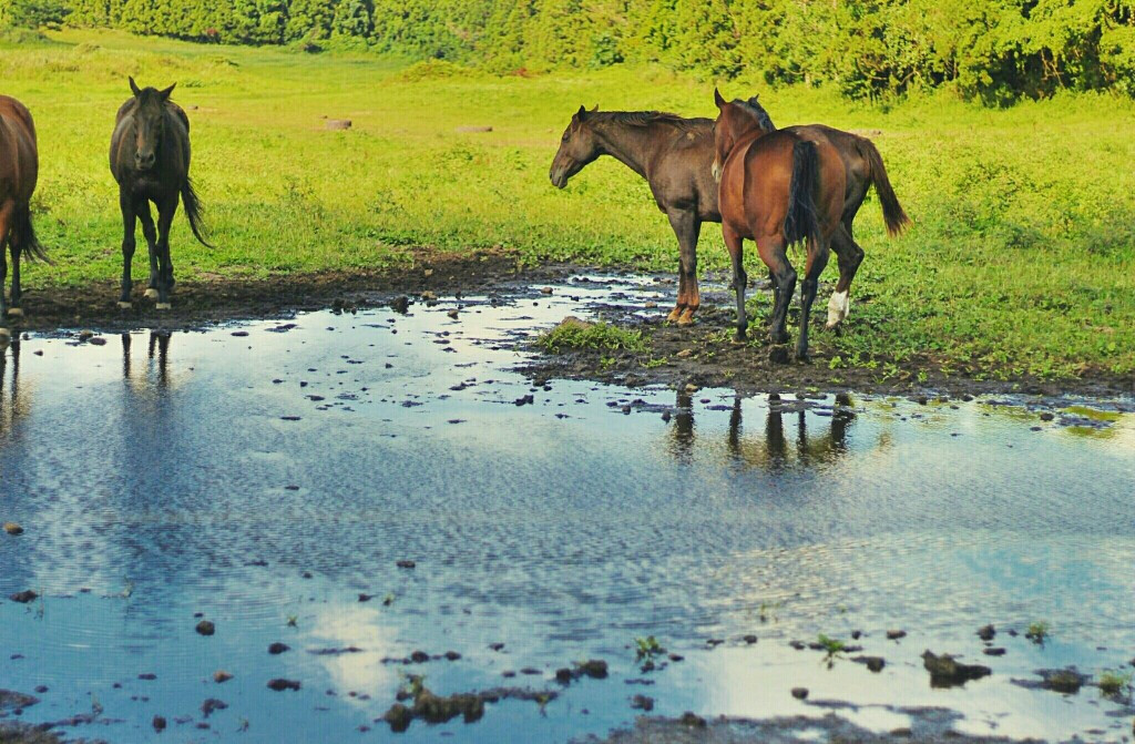 망아지들과는 달리 평온한 분위기로 풀을 뜯는 씨암말들은 더없이 우아하다.