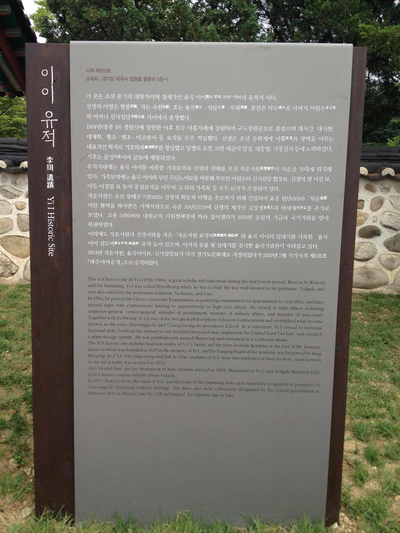 파주시는 최근 38억을 투입해 자운서원 주변 정비하고 이름도 율곡선생유적지로 바꿨다.