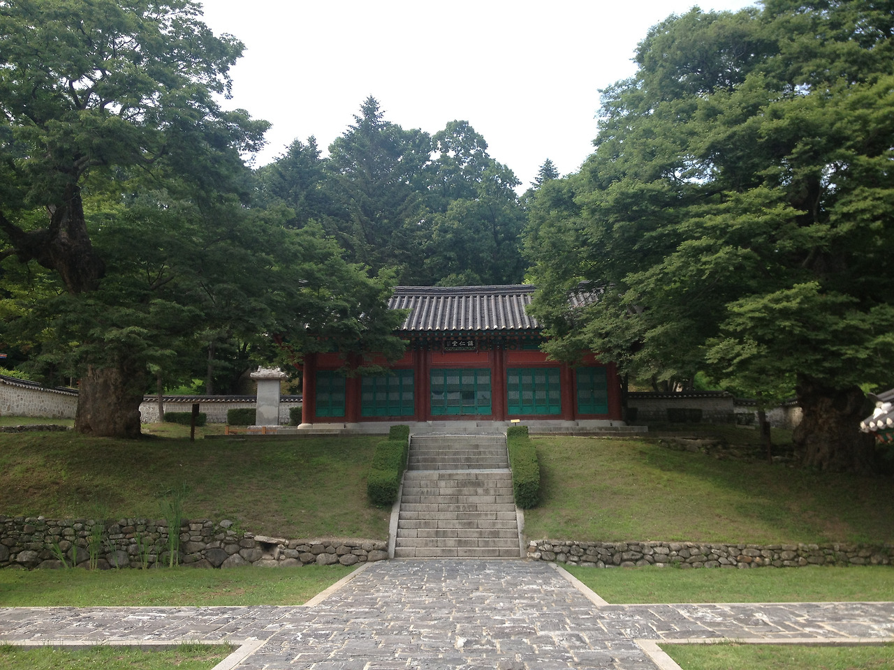 느티나무를 지나 솟을삼문을 밀고 들어가면 높은 지대 위에 아담하게 대지 위에 사당을 앉히고 사괴석 담장을 둘러 삼문 앞 계단으로 오르도록 설계하였다.