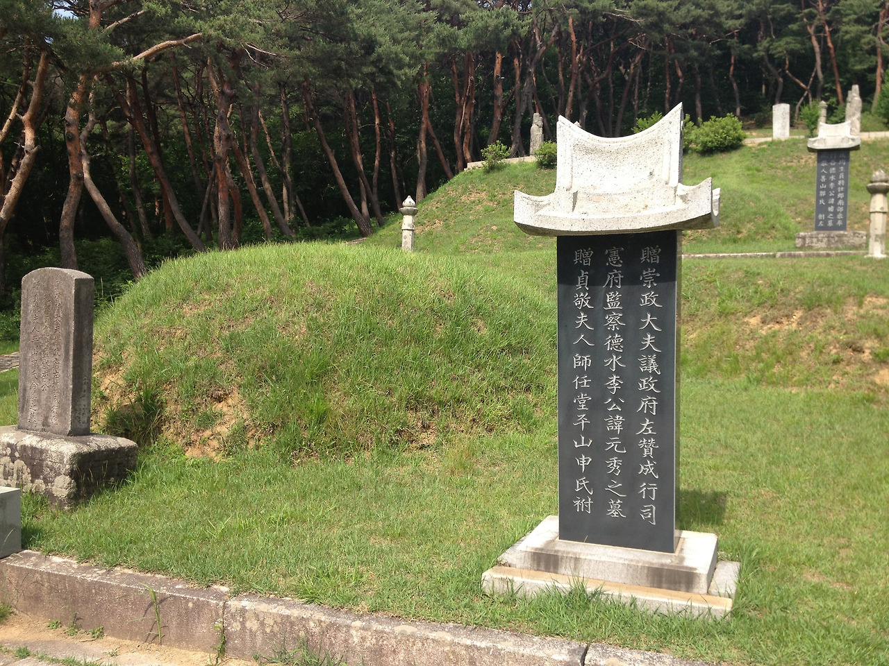 자운산 깊숙이 들어가면 율곡의 부모, 율곡 내외를 비롯해 한 가계의 묘 13기가 집결해 있다.