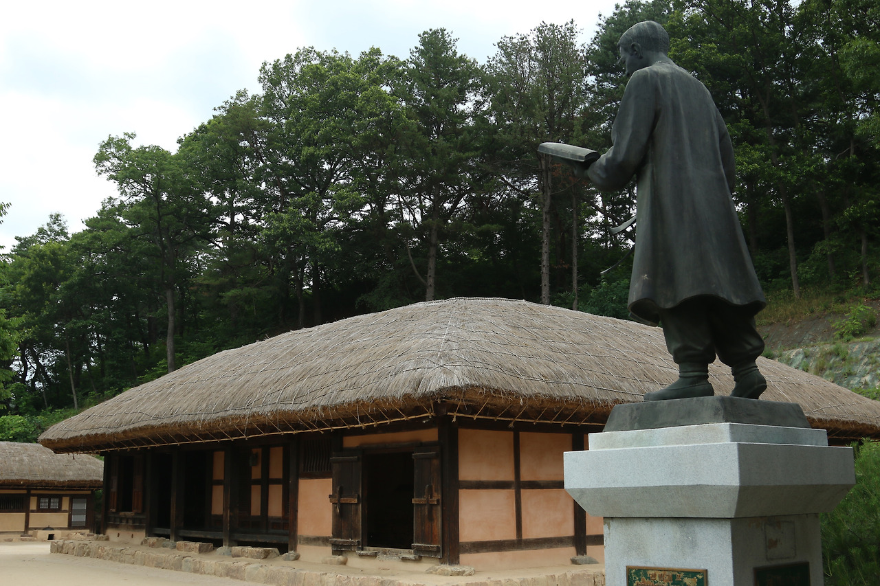 ㅁ자형의 초가집이 복원되고 연못, 정자. 외양간, 디딜방아, 기념관이 주위로 돌아간다.