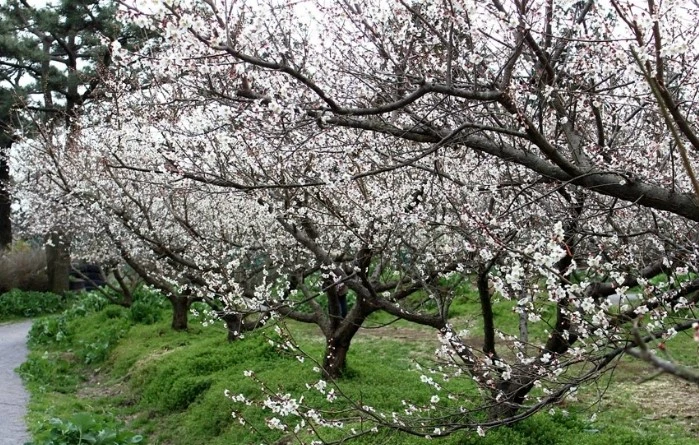 휴애리공원의 매화가 한창인 개화시기는 3월초.