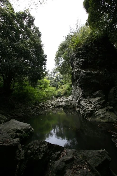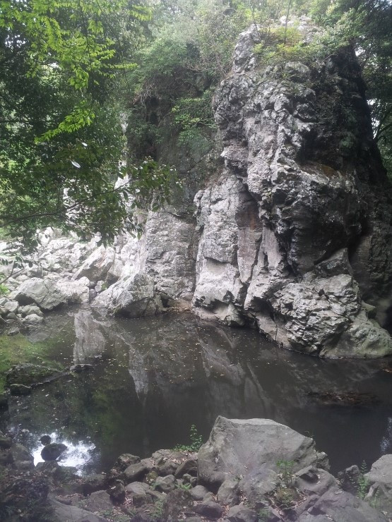 기암절벽이 병풍처럼 둘러져 있는 제주에서는 특이하게도 조면암(粗面岩)으로 이루어진 계곡이다.