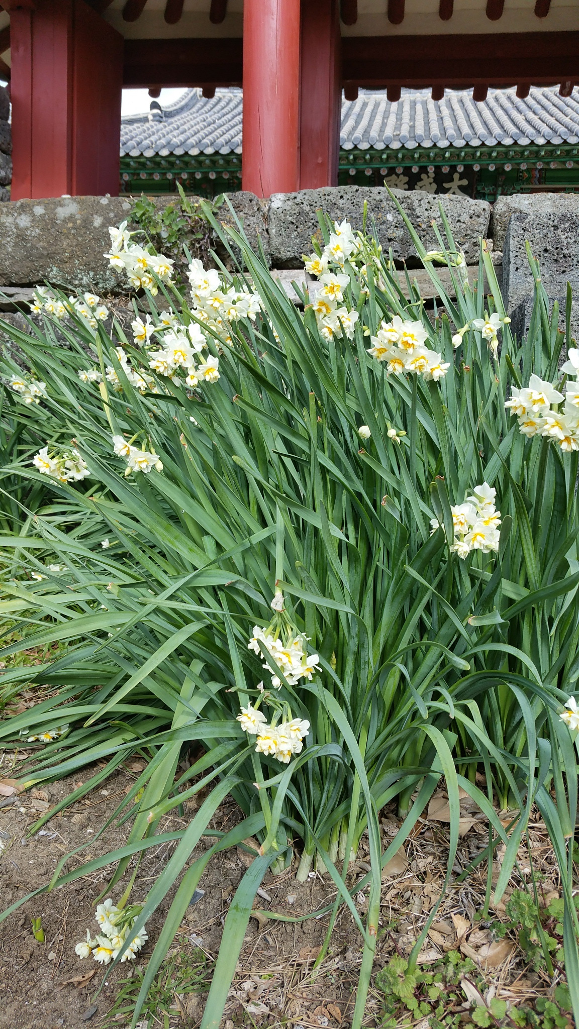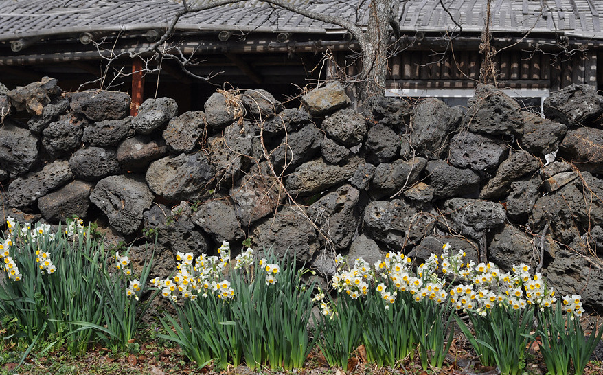 이 지역에서는 돌담 밑에서 솟아나거나 돌무더기를 뚫고 꽃망울을 터뜨리기 시작한 수선화를 볼 수 있다.