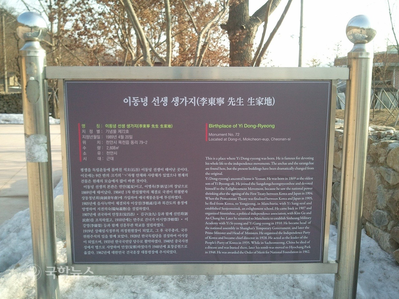 이동녕선생 생가는 천안시 동남구 목천읍 동리에 있다.