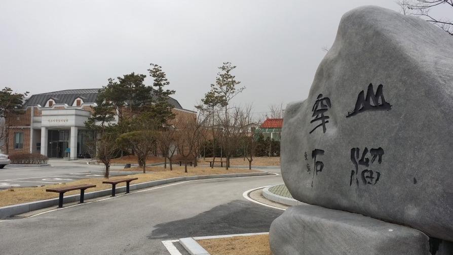 기념관 앞에는 선생이 생전에 자주 인용한 山溜穿石산류천석(산에서 흐르는 물이 바위를 뚫는다는 뜻으로, 물방울이라도 끊임없이 떨어지면 종내엔 돌에 구멍을 뚫듯이 작은 노력이라도 끈기 있게 계속하면 큰일을 이룰 수 있음)을 새긴 가로 3m, 세로 5m 규모의 휘호석이 세워져 있다.