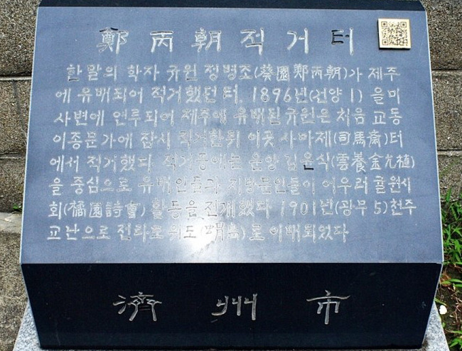 한 말의 학자 규원 정병조가 제주에 유배되어 적거했던 터다.