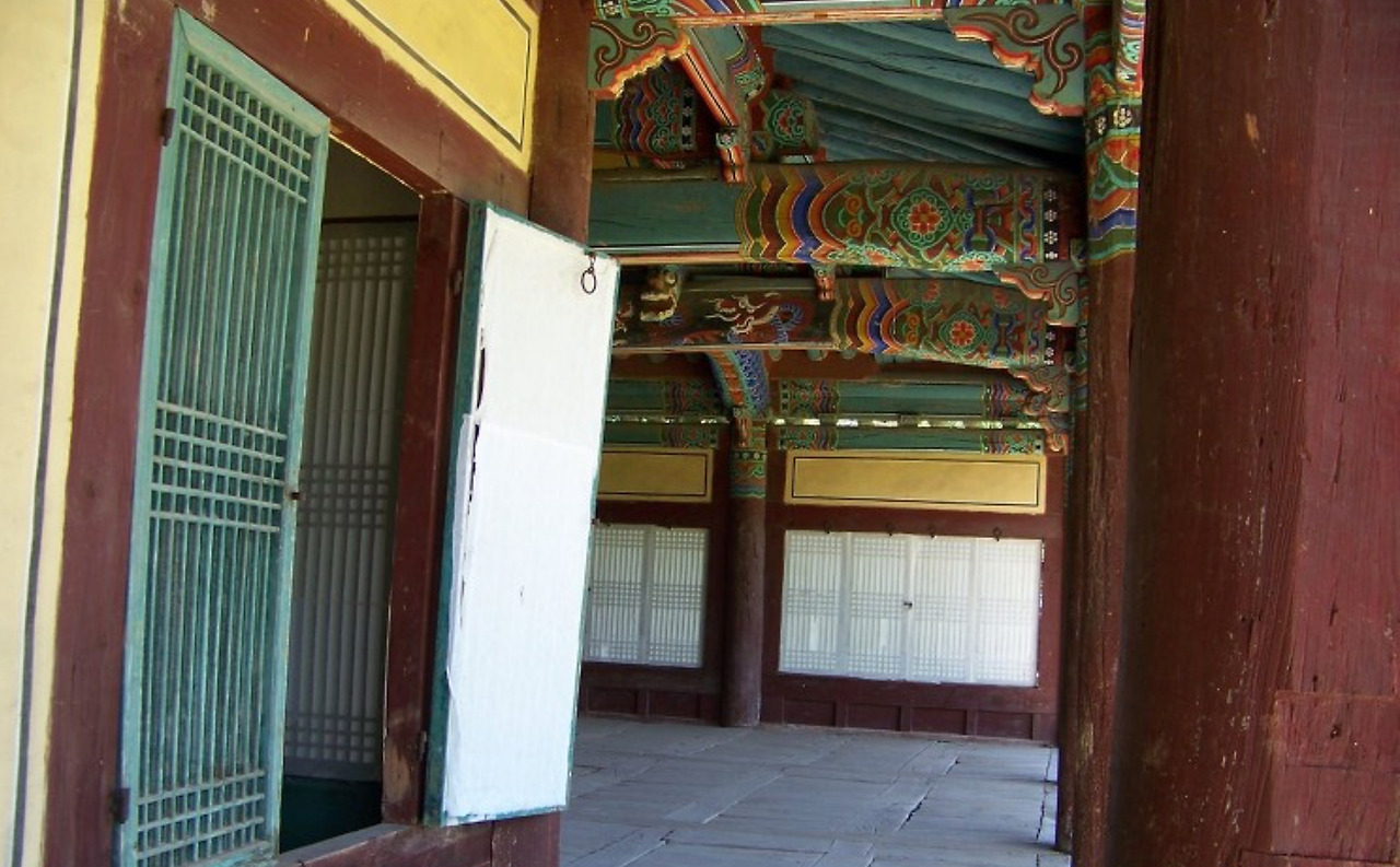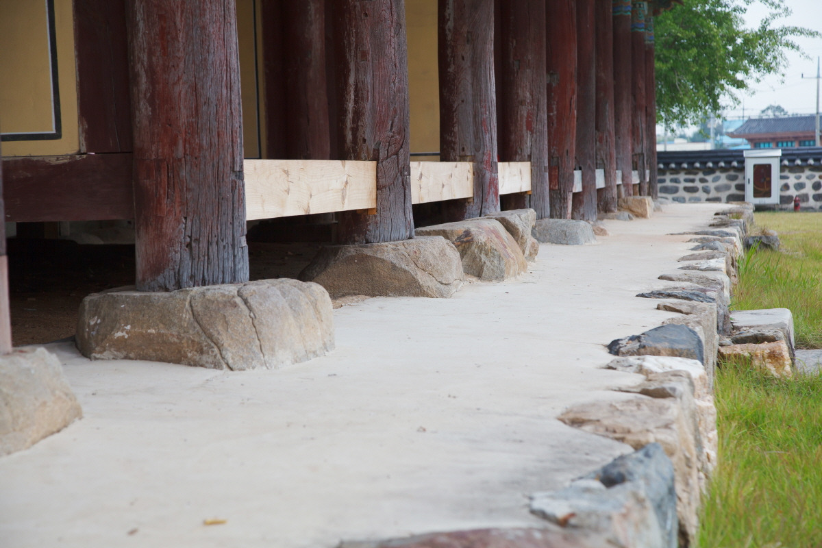 정당 앞면은 문짝없이 터 우물마루를 만들어 개방하고, 옆면과 뒷면은 灰壁회벽으로 막았다.