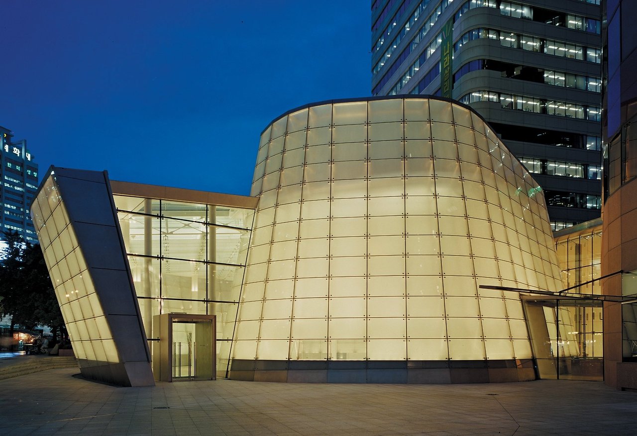 자연스레 기울어진 이중 반투명 유리벽은 내부와 외부, 삼성생명과 갤러리 외관상의 조화를 이루고, 갤러리 내부에 역동성을 불어 넣는 동시에 자연광을 확산시켜 부드러운 분위기를 창출하며, 상징주의 조각의 특징인 고정된 형태를 거부하고 조각표면에 반사되는 빛의 그림자에 의해 창조되는 고요함을 포용한다.