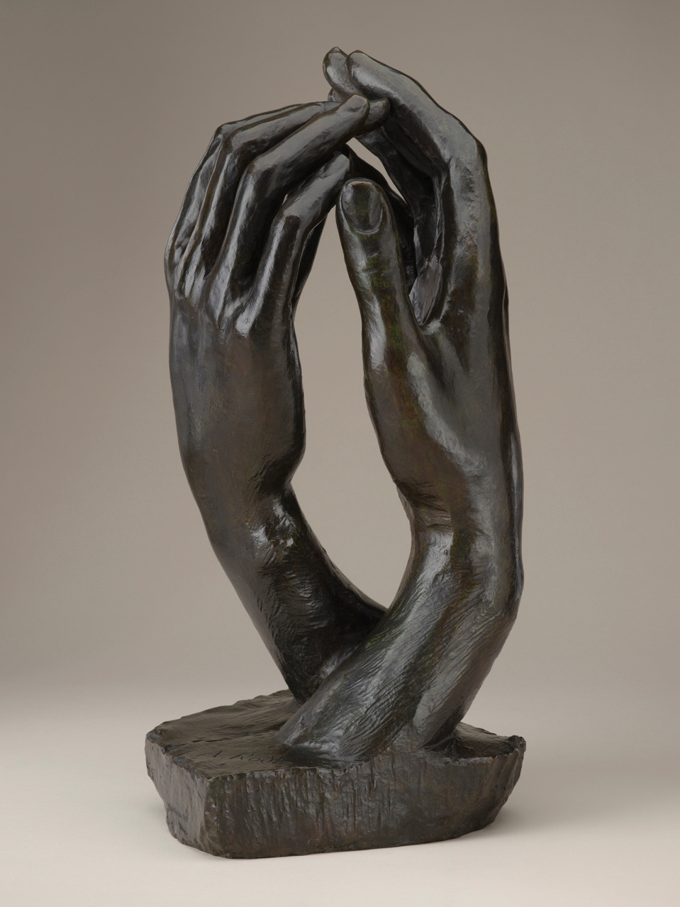 깔레의 항복자나 지옥의 문에 걸터앉아 있는 The Thinker 생각하는 사람처럼 근육이 넘쳐나는 남성적인 손이 아니라 부드럽게 포개어진 여성스러운 손이다.