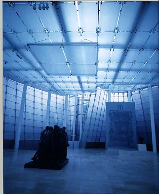 또한 서로 다른 각도로 축조된 벽은 ‘지옥의 문’의 정면감과 대비가 되는 ‘칼레의 시민’의 공간감을 정의하기에 적절한 공간을 만들어 낸다. 두 작품의 크기와 높이를 고려하여 ‘칼레의 시민’은 천정에 정사각형 모양의 부가천정을 만들었으며, ‘지옥의 문’의 경우에는 천정이 따로없이 경사진 Glass Pavilion의 지붕을 통하여 바로 자연광을 받을 수 있도록 그 위치를 선정하였다.